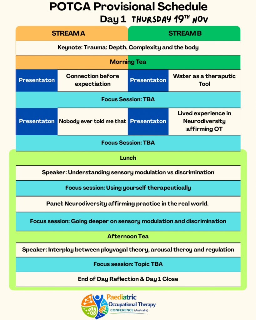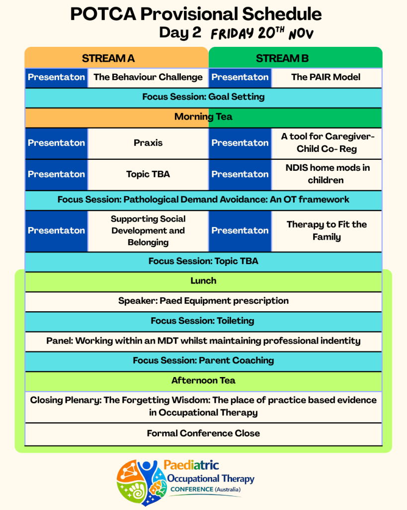 Whether you are an early career therapist, a senior clinician, or a practice leader, this conference is an opportunity to deepen your clinical thinking, connect with colleagues from across the country, and invest in the future of paediatric occupational therapy in Australia.